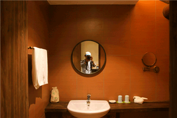 最值得一提的是套房的露天浴室。这间房不仅设了室内浴室,还特意在二楼的小院里设计了一个露天浴室。躺在露天的浴缸里,驱散一天的疲惫,恍惚间仿佛回到了远古时代,星空为被,大地为床。